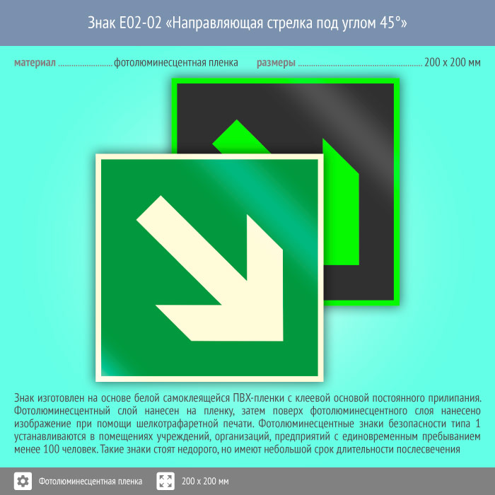 Знак E02-02 «Направляющая стрелка под углом 45°» (фотолюминесцентная пленка, 200х200 мм) в Ижевске купить