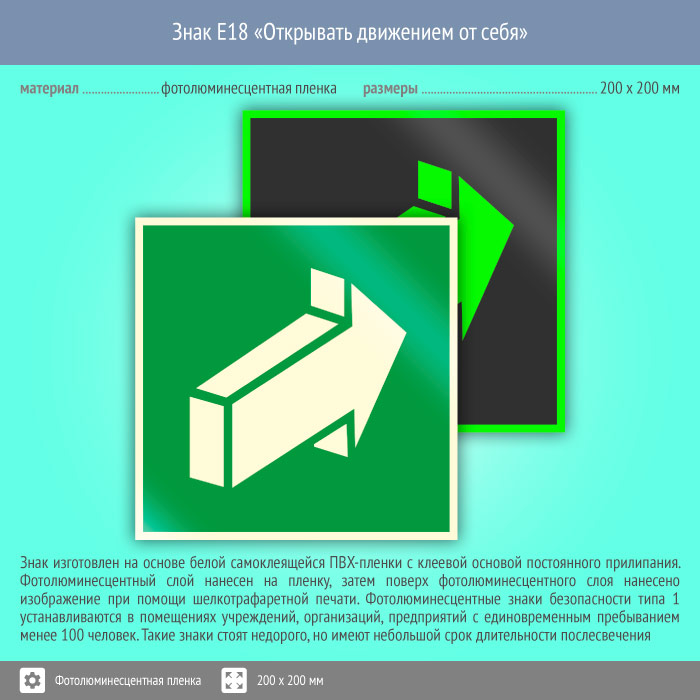 Знак E18 «Открывать движением от себя» (фотолюминесцентная пленка, 200х200 мм) в Ижевске купить