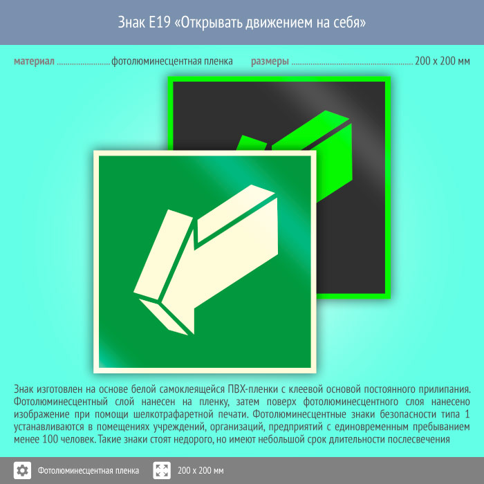 Знак E19 «Открывать движением на себя» (фотолюминесцентная пленка, 200х200 мм) в Ижевске купить