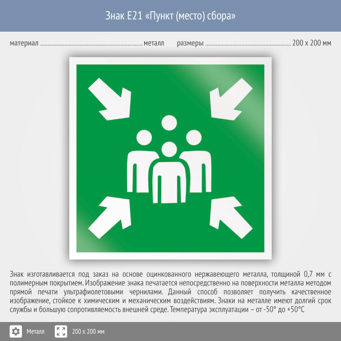Знак E21 «Пункт (место) сбора» (металл, 200х200 мм) в Ижевске купить