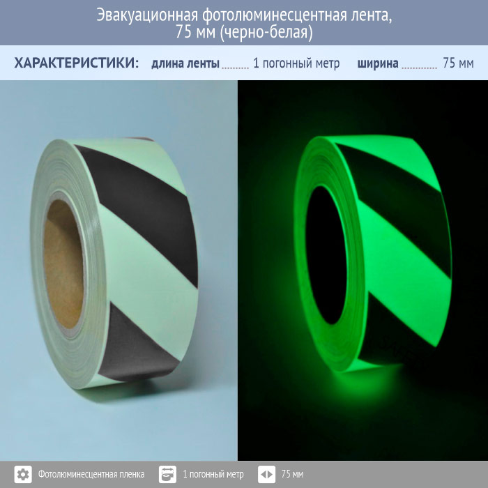 Эвакуационная фотолюминесцентная лента, 75 мм (черно-белая) в Ижевске купить