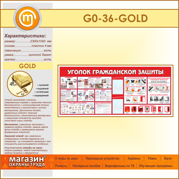 Стенд «Уголок гражданской защиты» c 2 карманами (GO-36-GOLD) в Ижевске купить