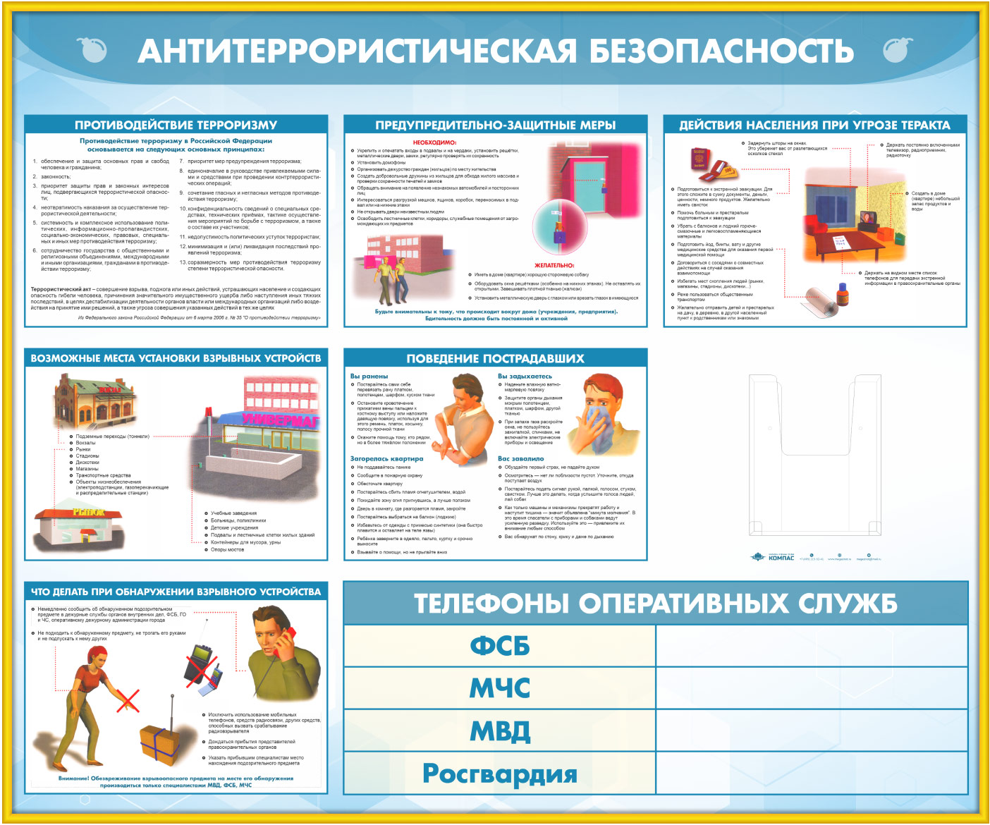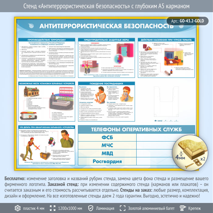 Стенд «Антитеррористическая безопасность» с глубоким А5 карманом (GO-43.2-GOLD) в Ижевске купить