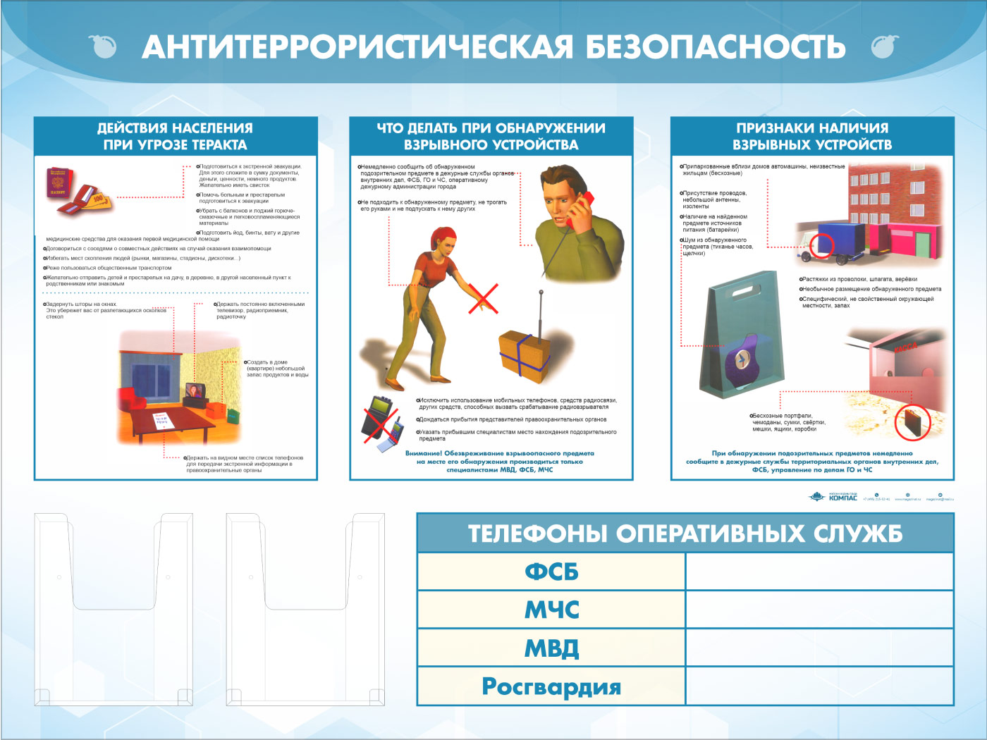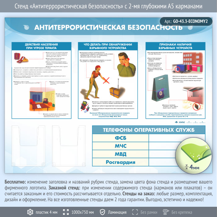 Стенд «Антитеррористическая безопасность» с 2-мя глубокими А5 карманами (GO-43.3-ECONOMY2) в Ижевске купить