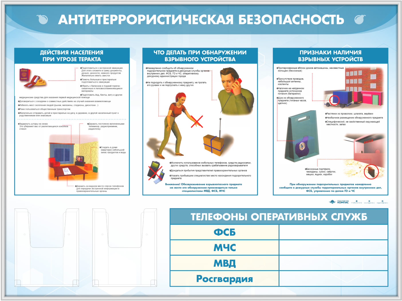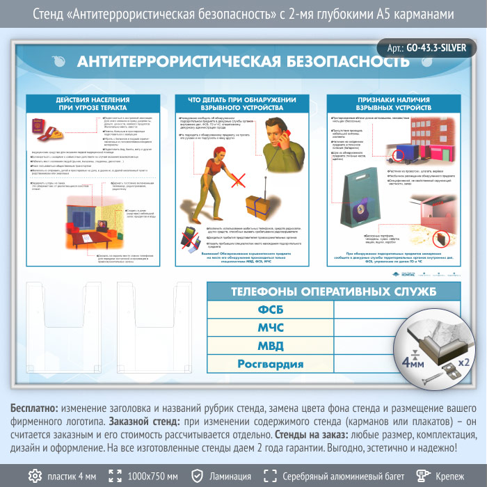Стенд «Антитеррористическая безопасность» с 2-мя глубокими А5 карманами (GO-43.3-SILVER) в Ижевске купить