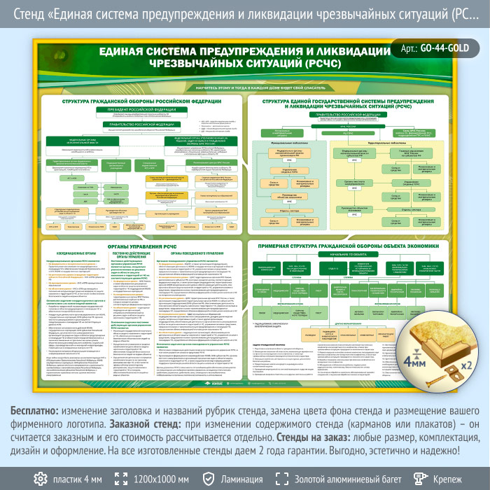 Стенд «Единая система предупреждения и ликвидации чрезвычайных ситуаций (РСЧС)» (GO-44-GOLD) в Ижевске купить