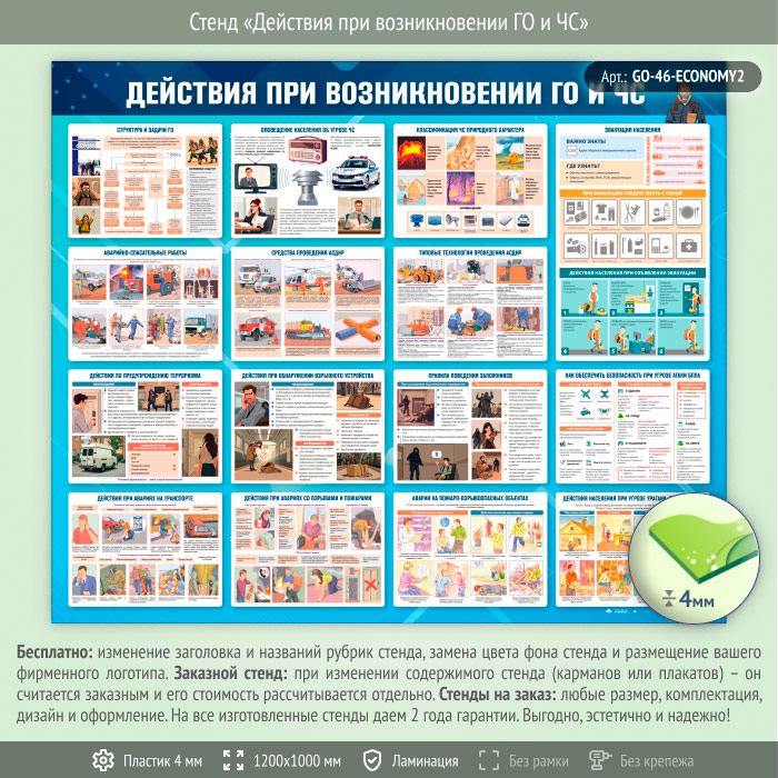 Стенд «Действия при возникновении ГО и ЧС» (GO-46-ECONOMY2) в Ижевске купить