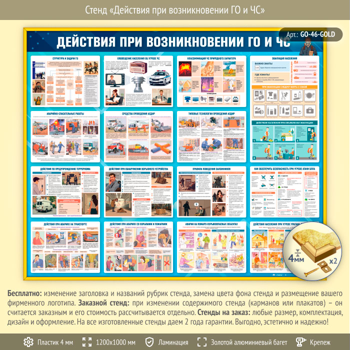 Стенд «Действия при возникновении ГО и ЧС» (GO-46-GOLD) в Ижевске купить