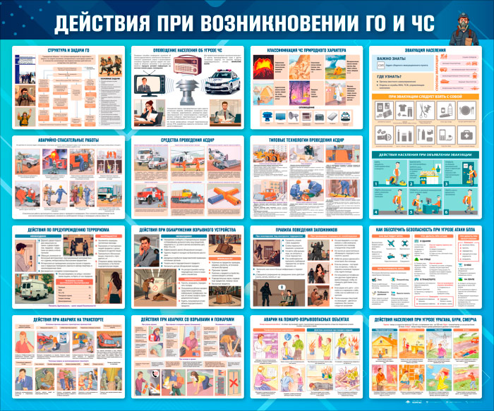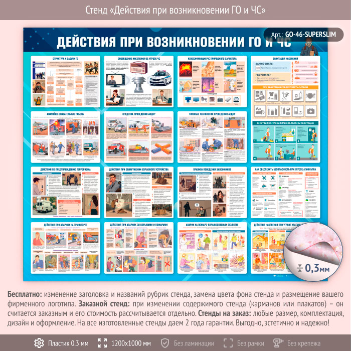Стенд «Действия при возникновении ГО и ЧС» (GO-46-SUPERSLIM) в Ижевске купить