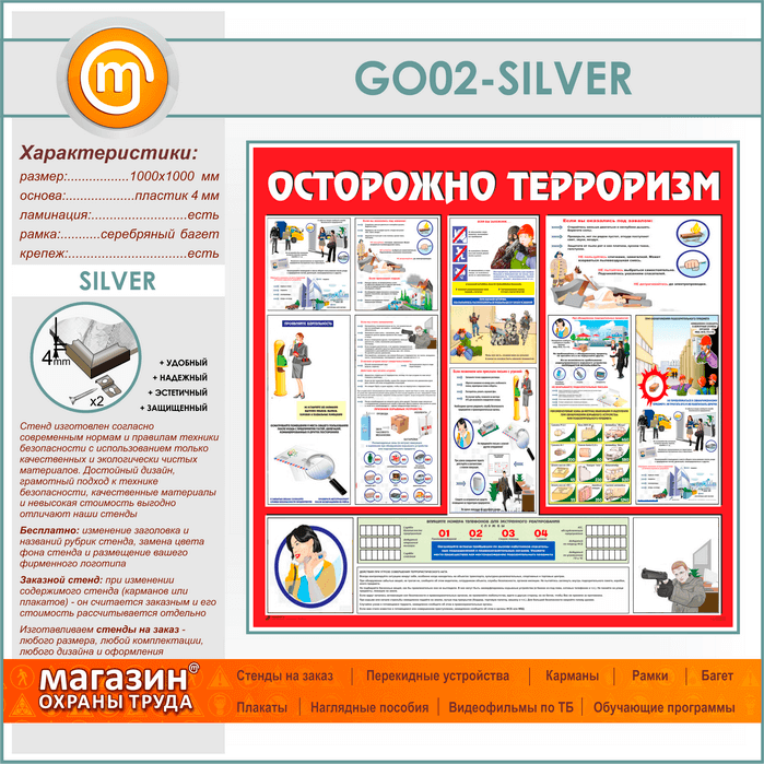 Стенд «Осторожно терроризм!» (GO-02-SILVER) в Ижевске купить