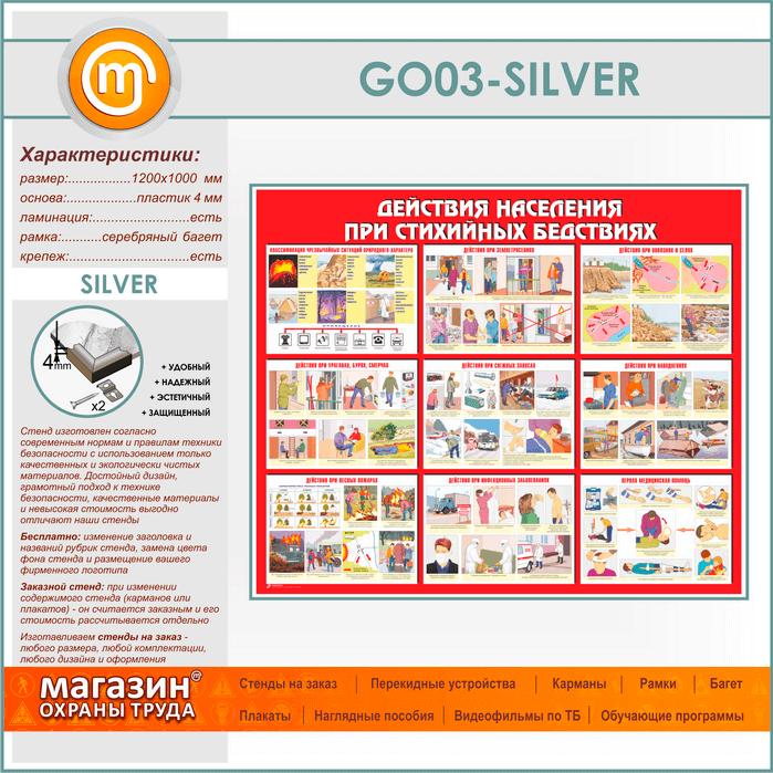 Стенд «Действия населения при стихийных бедствиях» (GO-03-SILVER) в Ижевске купить