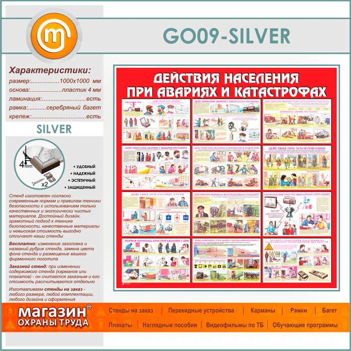 Стенд «Действия населения при авариях и катастрофах» (GO-09-SILVER) в Ижевске купить