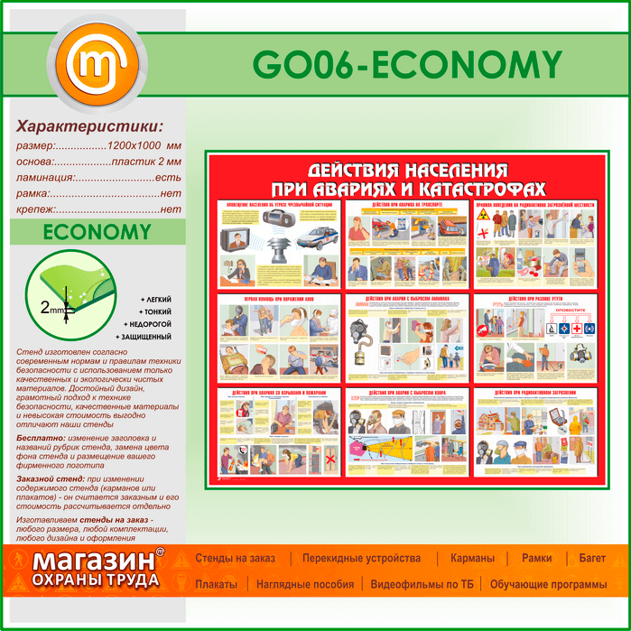 Стенд «Действия населения при авариях и катастрофах» (GO-06-ECONOMY) в Ижевске купить