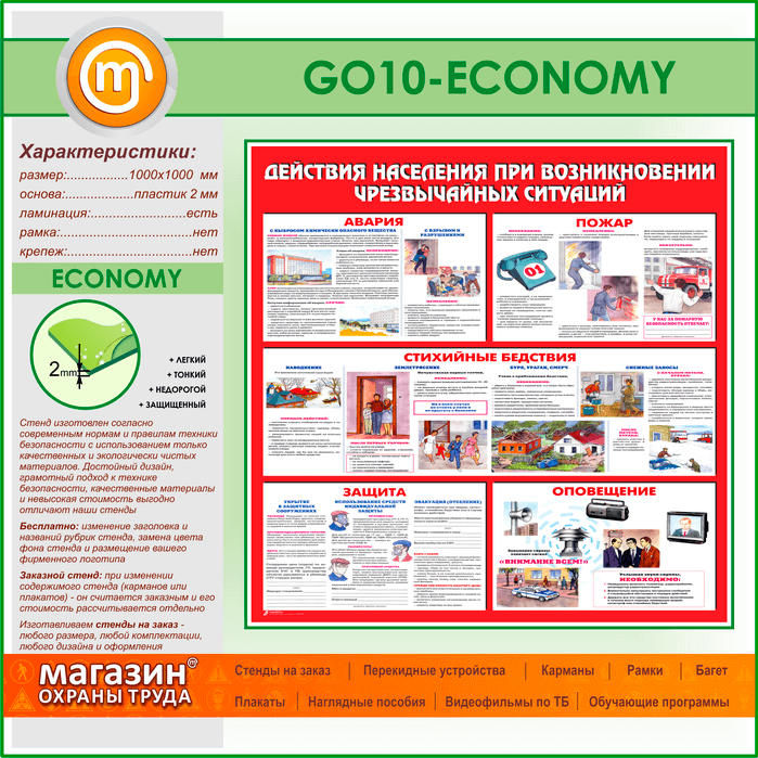 Стенд «Действия населения при возникновении чрезвычайных ситуаций» (GO-10-ECONOMY) в Ижевске купить