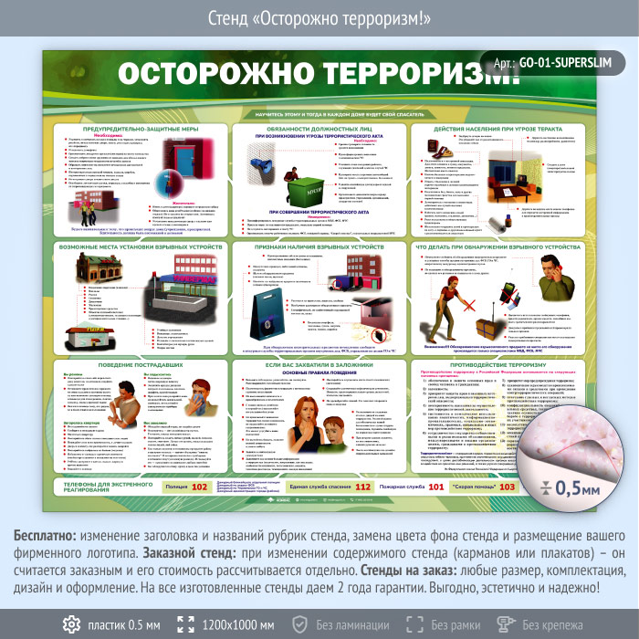 Стенд «Осторожно терроризм!» (GO-01-SUPERSLIM) в Ижевске купить