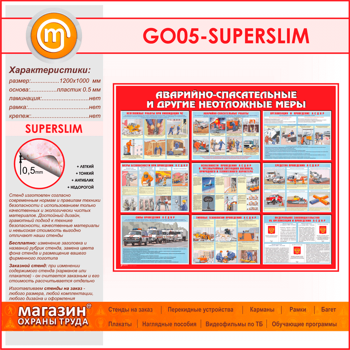 Стенд «Аварийно-спасательные и другие неотложные меры» (GO-05-SUPERSLIM) в Ижевске купить