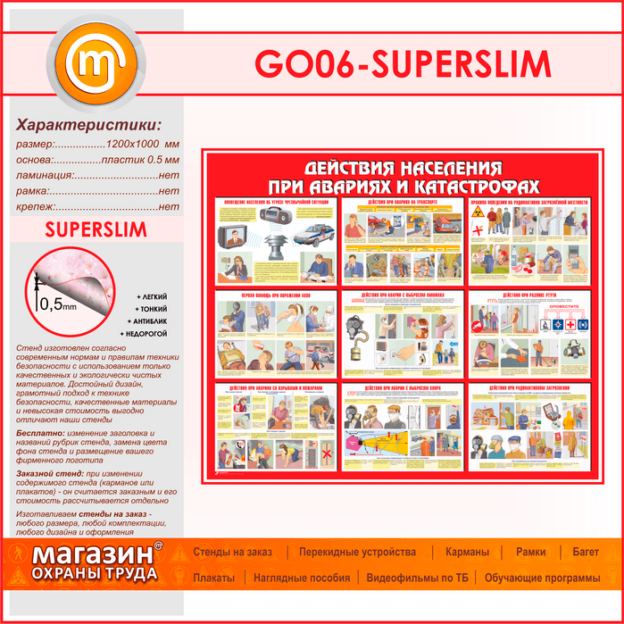 Стенд «Действия населения при авариях и катастрофах» (GO-06-SUPERSLIM) в Ижевске купить