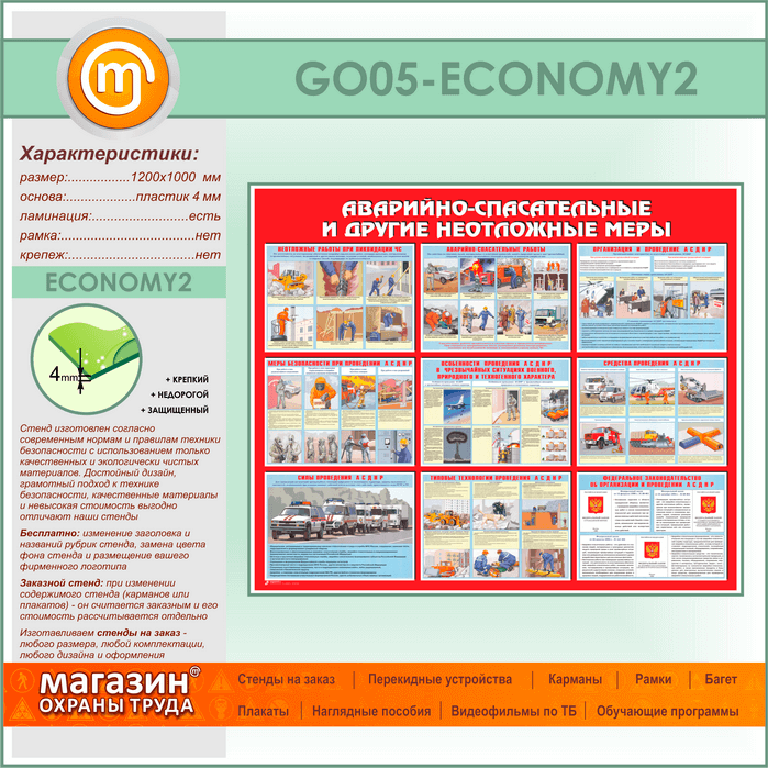 Стенд «Аварийно-спасательные и другие неотложные меры» (GO-05-ECONOMY2) в Ижевске купить