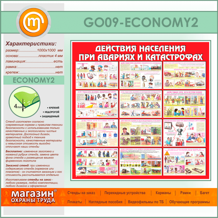 Стенд «Действия населения при авариях и катастрофах» (GO-09-ECONOMY2) в Ижевске купить