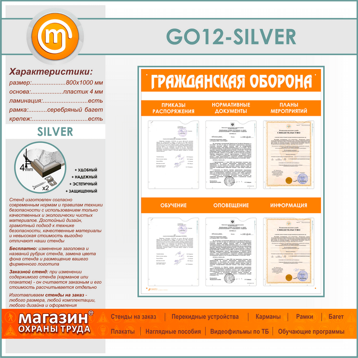 Стенд «Гражданская оборона» с 6 плоскими карманами (GO-12-SILVER) в Ижевске купить