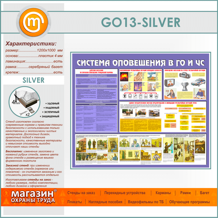 Стенд «Система оповещения в ГО и ЧС» (GO-13-SILVER) в Ижевске купить