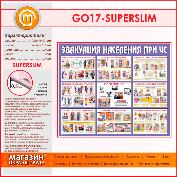 Стенд «Эвакуация населения при ЧС» (GO-17-SUPERSLIM) в Ижевске купить