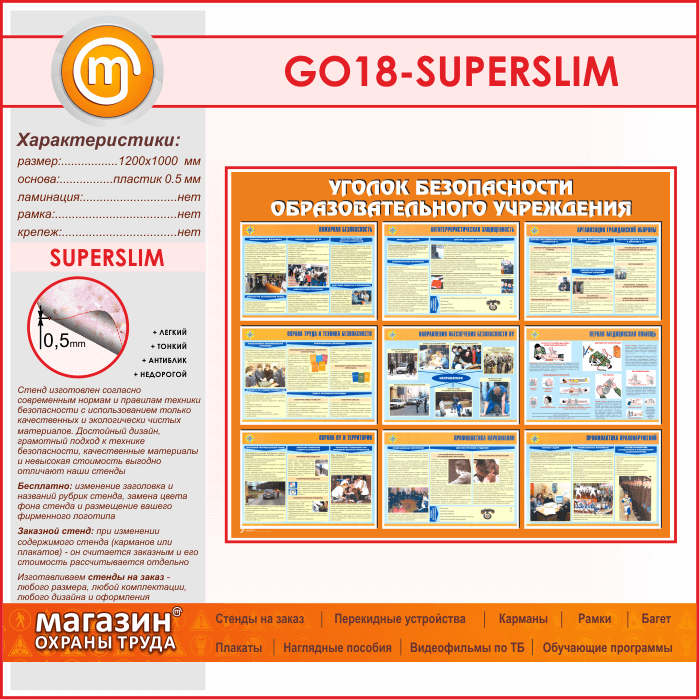 Стенд «Уголок безопасности образовательного учреждения» (GO-18-SUPERSLIM) в Ижевске купить