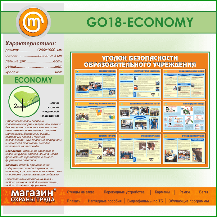 Стенд «Уголок безопасности образовательного учреждения» (GO-18-ECONOMY) в Ижевске купить