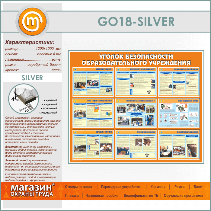 Стенд «Уголок безопасности образовательного учреждения» (GO-18-SILVER) в Ижевске купить