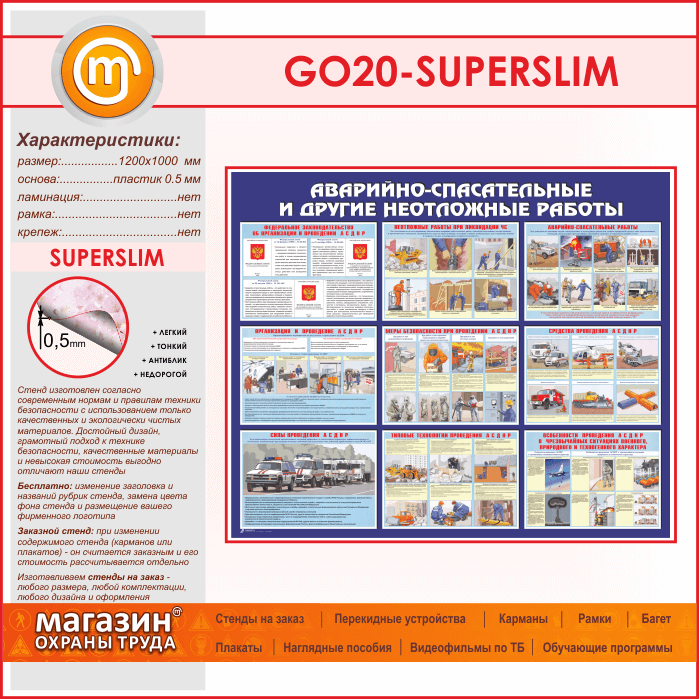 Стенд «Аварийно-спасательные и другие неотложные работы» (GO-20-SUPERSLIM) в Ижевске купить