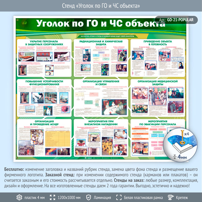 Стенд «Уголок по ГО и ЧС объекта» (GO-21-POPULAR) в Ижевске купить