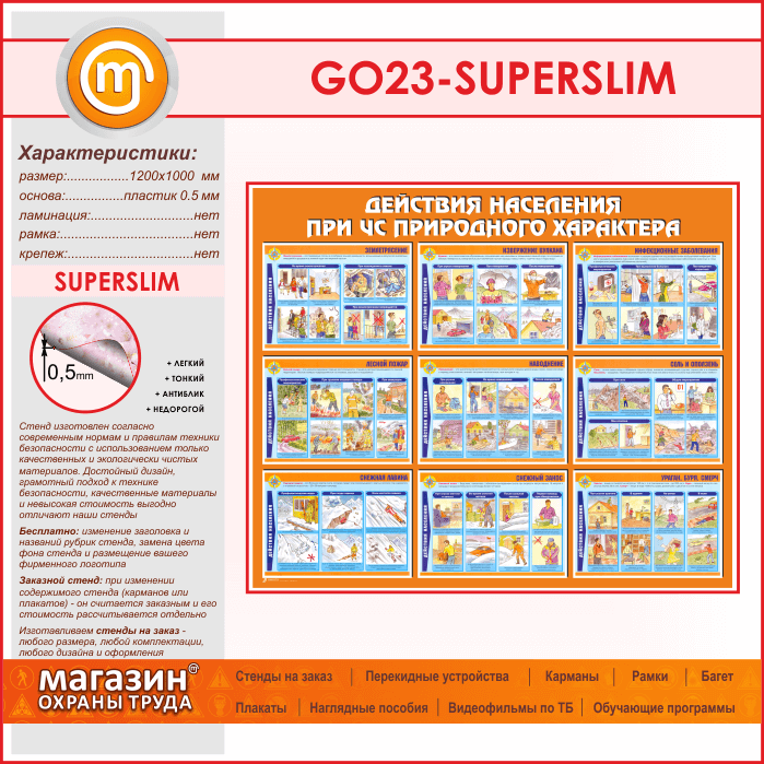 Стенд «Действия населения при ЧС природного характера» (GO-23-SUPERSLIM) в Ижевске купить