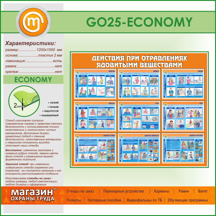 Стенд «Действия при отравлении ядовитыми веществами» (GO-25-ECONOMY) в Ижевске купить