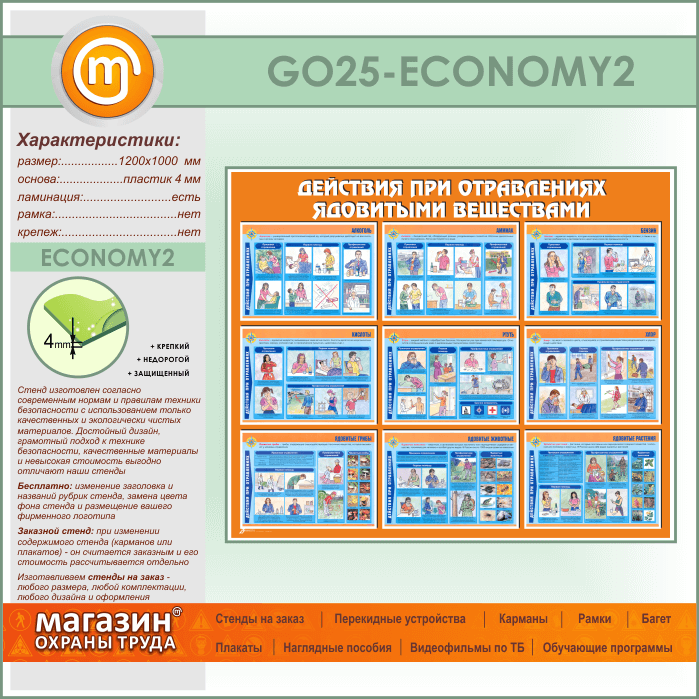 Стенд «Действия при отравлении ядовитыми веществами» (GO-25-ECONOMY2) в Ижевске купить