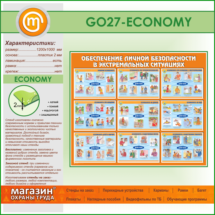Стенд «Обеспечение личной безопасности в экстремальных ситуациях» (GO-27-ECONOMY) в Ижевске купить