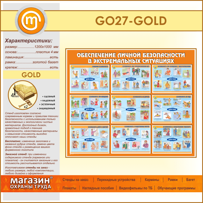 Стенд «Обеспечение личной безопасности в экстремальных ситуациях» (GO-27-GOLD) в Ижевске купить