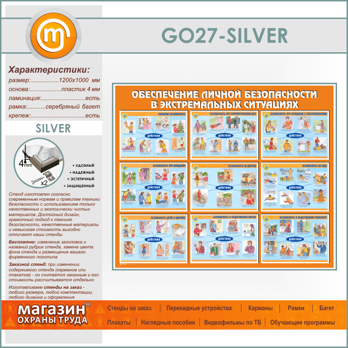 Стенд «Обеспечение личной безопасности в экстремальных ситуациях» (GO-27-SILVER) в Ижевске купить