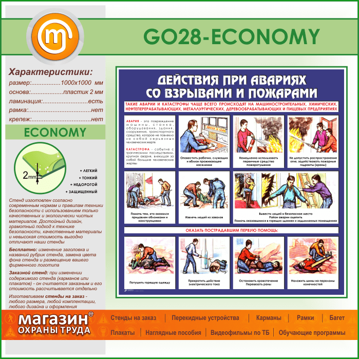 Стенд «Действия при авариях со взрывами и пожарами» (GO-28-ECONOMY) в Ижевске купить