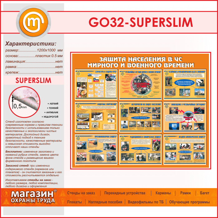 Стенд «Защита населения в ЧС мирного и военного времени» (GO-32-SUPERSLIM) в Ижевске купить