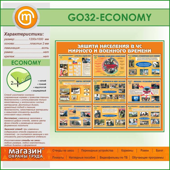 Стенд «Защита населения в ЧС мирного и военного времени» (GO-32-ECONOMY) в Ижевске купить