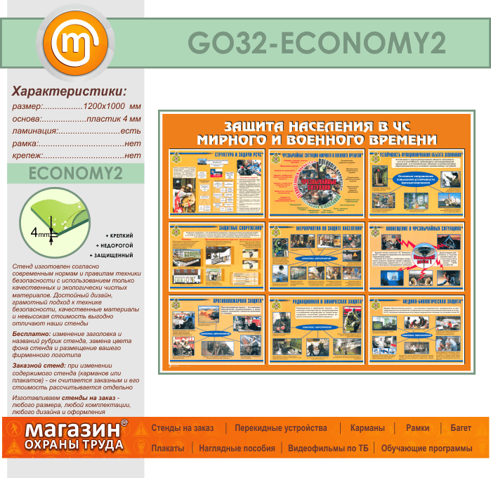 Стенд «Защита населения в ЧС мирного и военного времени» (GO-32-ECONOMY2) в Ижевске купить