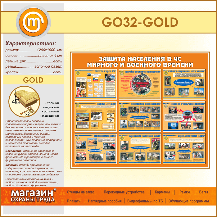 Стенд «Защита населения в ЧС мирного и военного времени» (GO-32-GOLD) в Ижевске купить