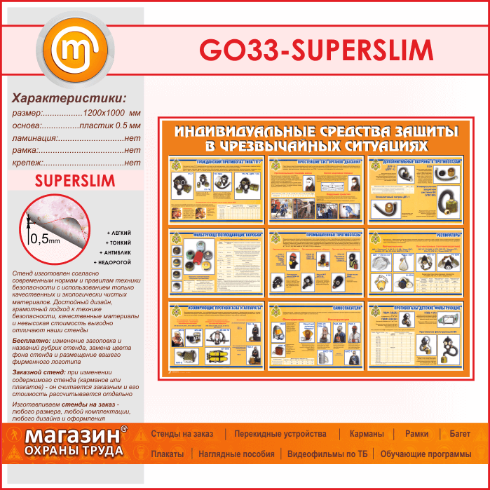 Стенд «Индивидуальные средства защиты в чрезвычайных ситуациях» (GO-33-SUPERSLIM) в Ижевске купить