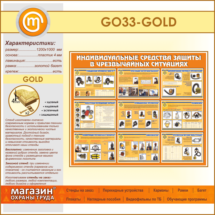 Стенд «Индивидуальные средства защиты в чрезвычайных ситуациях» (GO-33-GOLD) в Ижевске купить