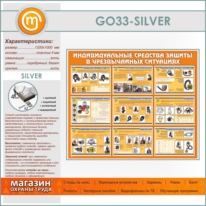Стенд «Индивидуальные средства защиты в чрезвычайных ситуациях» (GO-33-SILVER) в Ижевске купить