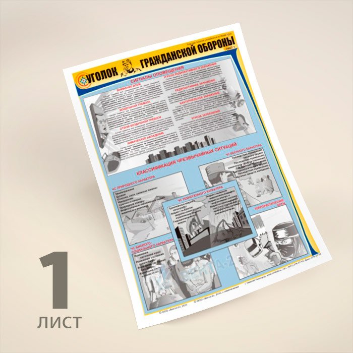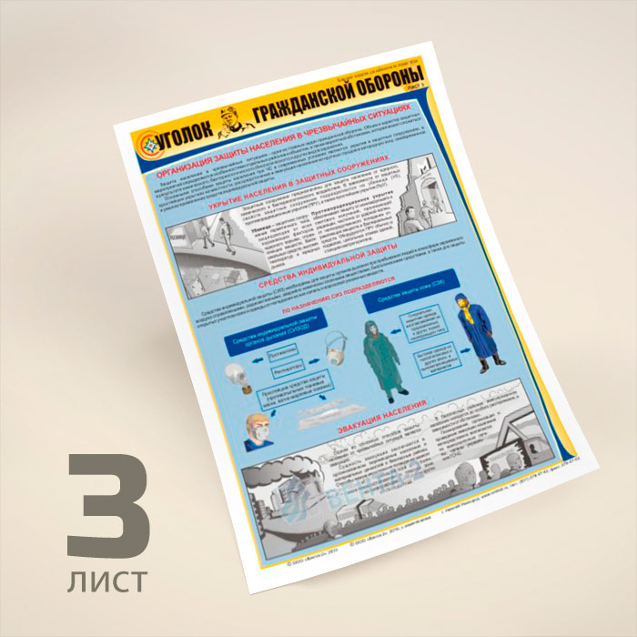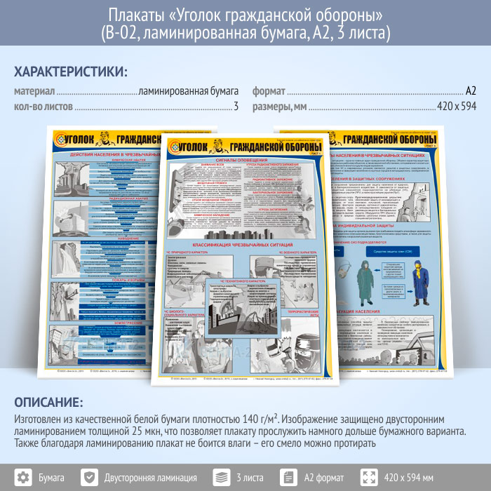 Плакаты «Уголок гражданской обороны» (В-02, ламинированная бумага, А2, 3 листа) в Ижевске купить