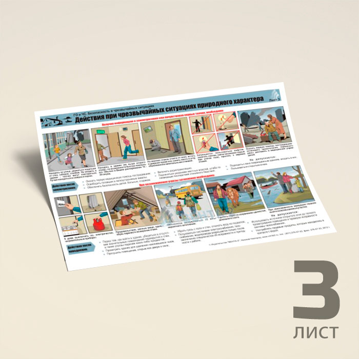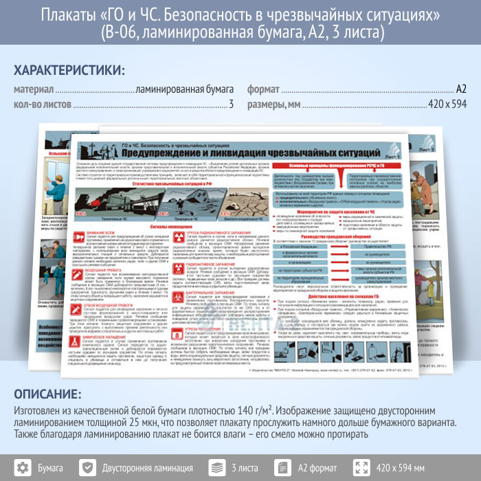 Плакаты «ГО и ЧС. Безопасность в чрезвычайных ситуациях» (В-06, ламинированная бумага, А2, 3 листа) в Ижевске купить