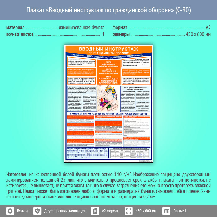 Плакат «Вводный инструктаж по гражданской обороне» (С-90, ламинированная бумага, А2, 1 лист) в Ижевске купить