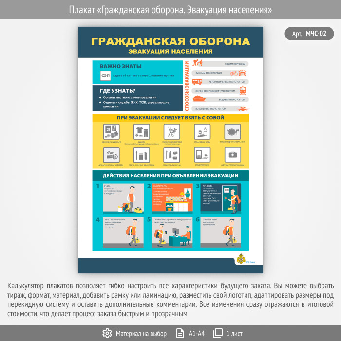 Плакат «Гражданская оборона. Эвакуация населения» (МЧС-02, 1 лист) в Ижевске купить
