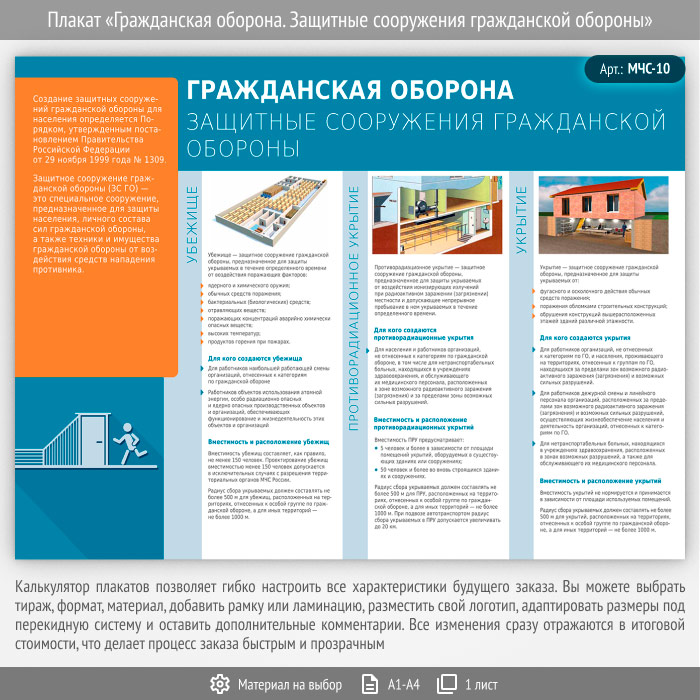 Плакат «Гражданская оборона. Защитные сооружения гражданской обороны» (МЧС-10, 1 лист) в Ижевске купить